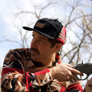 Huntin' what, you ask? Big game. All day! Huntin' down your meal on a Saturday; warm ears. On the hunt for your precious; toasty head. You'll be warm headed, fashionable, and under the influence of good advice. Don't let your ears experience a nip slip. They'll turn red. B Fresh Gear Elmer Fudd hats, this 5 panel black corduroy hat will keep your ears not red, which is warm.