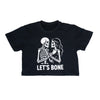 Meet your new conversation starter. This tee serves a clean, high-contrast skeleton lovers graphic with a playful “LET’S BONE” punchline—equal parts romantic and rowdy. Printed on a soft, durable cotton body that holds shape after repeated wears, with a print that stays bright through the season. Dress it up with a flannel, or crop it and pair with high-rise denim. Either way, you’ll pull double-takes.